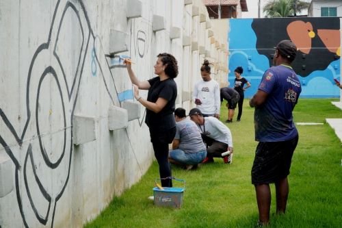 Esta é apenas uma das aulas práticas realizadas durante o projeto. A previsão é de que o mural fique pronto nos próximos dias, com a finalização pelos artistas do Cidade Ilustrada.