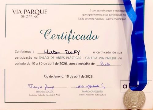 O artista macaense Jailton de Jesus Machado, que assina suas obras como Hilton Daky, conquistou a medalha de prata no Salão Nacional da Galeria Via Parque, realizado no Shopping Via Parque, na Barra da Tijuca, no Rio de Janeiro. A premiação ocorreu na última sexta-feira, 10 de abril de 2026, consolidando o nome do artista como um dos destaques da cena contemporânea nacional.