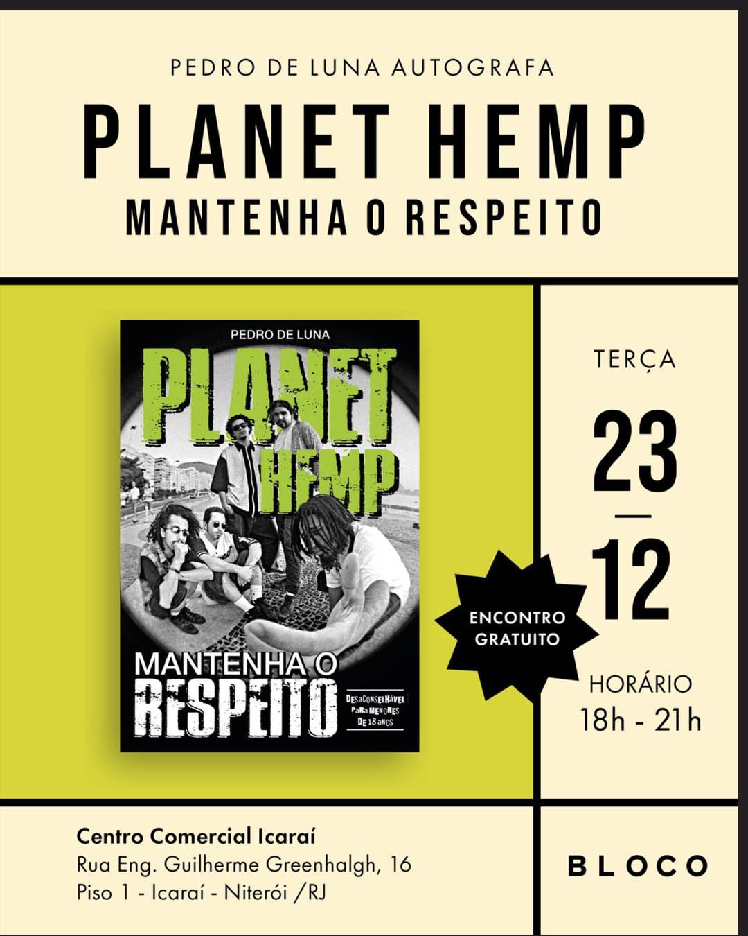 Na terça-feira, dia 23, das 18h às 00h, acontecerá na livraria Bloco, em Icaraí, o lançamento da biografia “Planet Hemp – Mantenha o Respeito”  (Ilustre Editora, 512 páginas) , com a presença do autor, o jornalista e escritor Pedro de Luna. O livro, que consumiu dois anos de intensa pesquisa e coleções de entrevistas, promove um mergulho completo na trajetória da banda que transformou a cena cultural brasileira.
