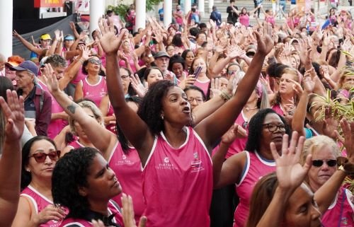 “Nós sempre trabalhamos com temas transversais no projeto e realizamos esse grande encontro, com todos os professores e alunos hoje, reforçando a campanha Outubro Rosa. Temos muitas mulheres nos núcleos e esse autocuidado ainda é um tabu para algumas. Então, com a nossa linguagem, elas se sentem mais à vontade,” destacou a coordenadora do projeto, Elaine Bartolomeu.