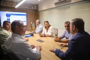 O prefeito de Niterói, Rodrigo Neves, junto a outras autoridades municipais, visitou, nesta quinta-feira (19), o Centro de Controle Operacional (CCO) da Águas de Niterói para tratar do avanço das obras de universalização do esgotamento sanitário no município.