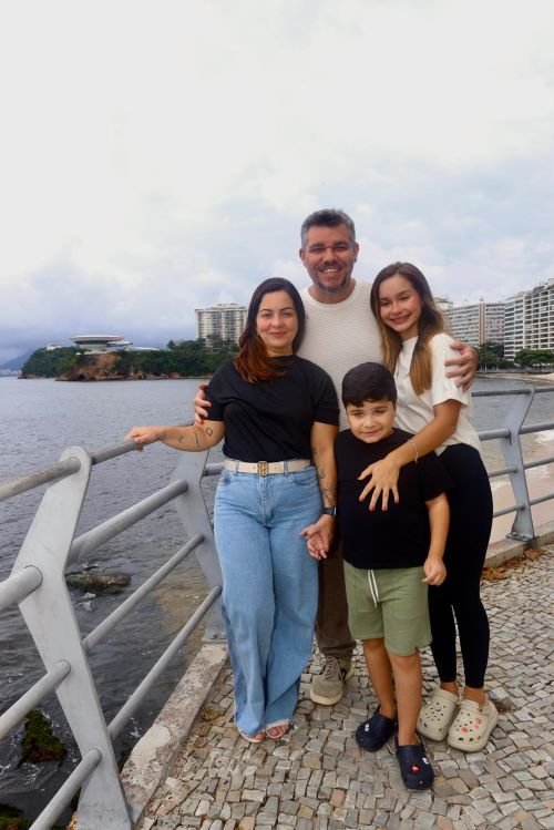 Paulo vive em Icaraí com a esposa, Natália Barrozo, de 37 anos, e os filhos Giulia, de 16, e Paulo Ricardo, de 9.