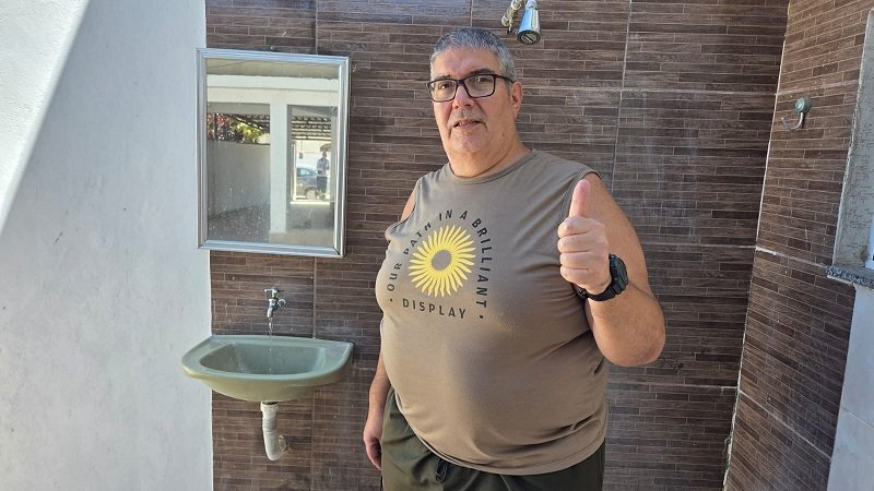 “Ainda falta recurso para terminar as instalações que preciso fazer, mas já não vou ficar usando uma água que não é boa e serve apenas para algumas atividades. Era muito sacrifício. Tivemos de pegar água da chuva para usar na descarga. Agora estou muito feliz. Só tenho a agradecer por esse trabalho.”
