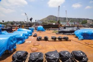 As embarcações estão sendo equipadas no estaleiro Dialcar Serviços Marítimos, localizado na Ilha da Conceição, onde passam por rigorosos protocolos de segurança antes de serem posicionadas no mar. No total, serão utilizadas cinco balsas na Praia de Icaraí, ancoradas a aproximadamente 500 metros da faixa de areia.