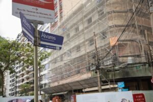 As equipes se preparam para iniciar a instalação das estruturas metálicas que sustentarão as novas lajes, desde a fundação até o topo, já tendo sido concluído todo o trabalho de reforço estrutural do imóvel.