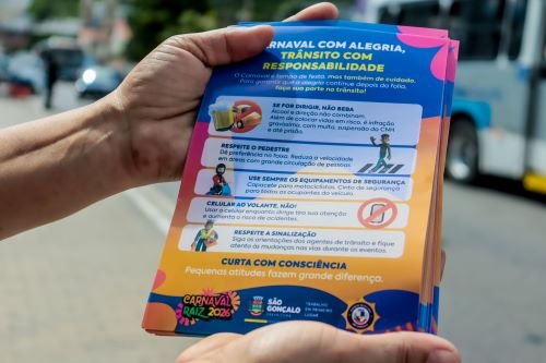 Em ritmo de Carnaval, a Secretaria de Meio Ambiente e Transportes da Prefeitura de São Gonçalo realizou mais uma ação de conscientização para os motoristas, visando um trânsito mais seguro. Na ação desta quinta-feira (12), motoristas de motos, caminhões e carros foram abordados por agentes da Prefeitura na Avenida Presidente Kennedy, próximo ao Clube Tamoio, na região central da cidade.