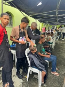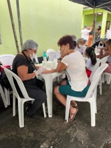 Os moradores também puderam aferir a pressão arterial com equipe de enfermagem, além de aproveitar cuidados de beleza, como manicure e barbeiro, e atividades recreativas para as crianças.