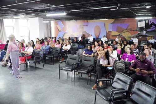 Em um gesto simbólico de apoio à campanha, diversos servidores vestiram blusas na cor rosa, reforçando a importância da prevenção e do diagnóstico precoce do câncer de mama.