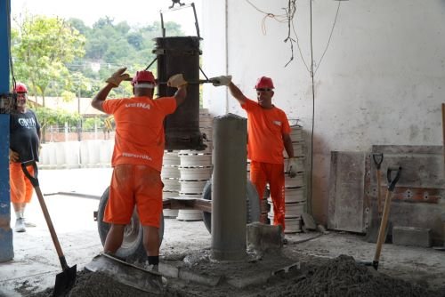 Trabalho diário em unidade na Água Mineral inclui produção de manilhas, blocos e outros itens usados em obras na cidade